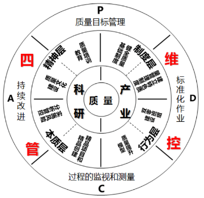 七二五所結(jié)合自身軍工科研和科技產(chǎn)業(yè)“一所兩制”的特點(diǎn),凝練形成了一套目標(biāo)明確(P)、標(biāo)準(zhǔn)作業(yè)(D)、監(jiān)管有效(C)、螺旋上升持續(xù)改進(jìn)(A)的“四維”質(zhì)量管理模式。該模式沿著精神層、制度層、行為層和本質(zhì)層四個(gè)維度實(shí)施質(zhì)量建設(shè)和管控。精神層是“核心”層,體現(xiàn)了七二五所人對(duì)質(zhì)量?jī)r(jià)值的精神追求,通過質(zhì)量文化創(chuàng)建、內(nèi)外部宣傳教育來牢固樹立四維質(zhì)量管理的理念。制度層是“法制”層,以制度形式規(guī)范質(zhì)量行為、工藝標(biāo)準(zhǔn)。建立覆蓋四大板塊的多行業(yè)立體式管理體系,形成47個(gè)特色制度,保障四維質(zhì)量管理模式的有效實(shí)施。行為層是“實(shí)施”層,通過質(zhì)量提升模型和雙零班組建設(shè)開展實(shí)施,反映了七二五所人對(duì)質(zhì)量文化精神維度的理解和對(duì)制度維度的遵守。本質(zhì)層是“目的”層,是四維質(zhì)量管理輸出的目標(biāo)產(chǎn)物,反映了產(chǎn)品、服務(wù)的本質(zhì)質(zhì)量。