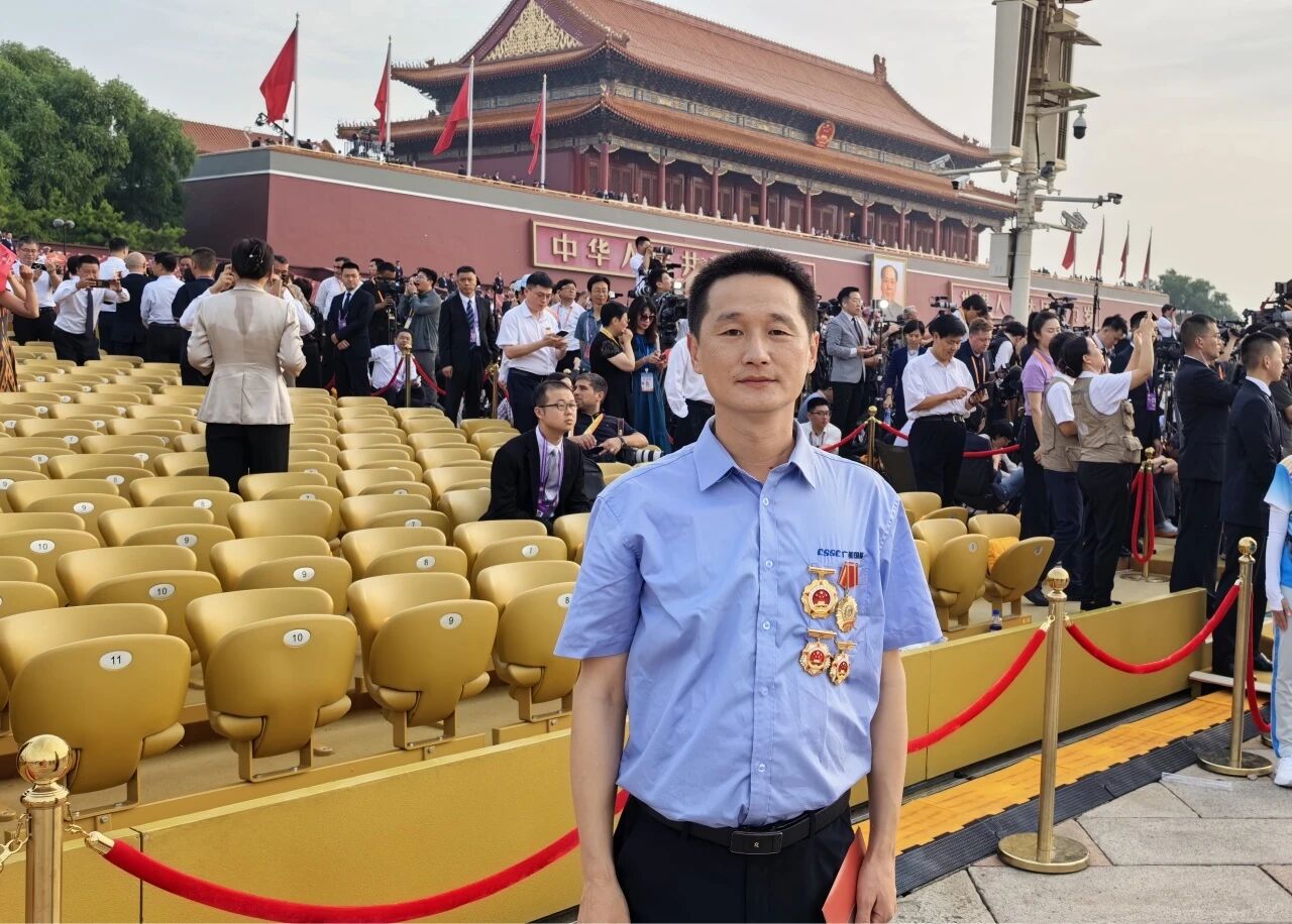 當雄壯的《義勇軍進行曲》奏響,五星紅旗冉冉升起,我情不自禁地起身肅立,與現場所有群眾代表一同高唱國歌。這一刻,跨越時空的民族記憶被瞬間激活,80年前先輩們為民族存亡浴血奮戰的壯闊畫卷仿佛在眼前重現。在閱兵分列式中看到了我們中船集團研制的8型整裝裝備震撼出場,接受黨和人民的檢閱,倍感榮光,背后是我們中船人的不懈努力和創新精神。