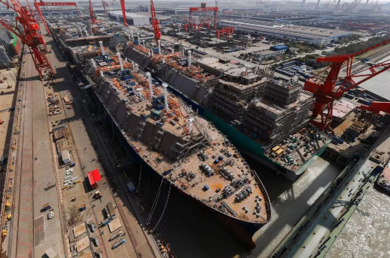 4船同塢建造的場景不僅將成為常態,也標志著滬東中華LNG運輸船建造開啟“加速度”模式,產能倍增戰略進入新階段。