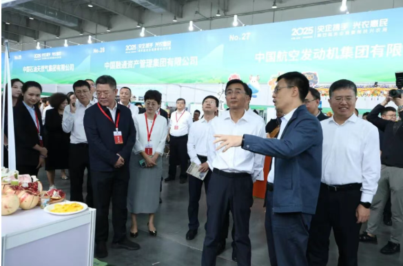 國務院國資委秘書長莊樹新、國務院國資委社會責任局局長李軍、農(nóng)業(yè)農(nóng)村部區(qū)域協(xié)作促進司(革命老區(qū)工作辦公室)司長(主任)李富君等領導來到中船集團展區(qū),詢問了解集團公司定點幫扶的進展情況及特色農(nóng)產(chǎn)品相關信息。